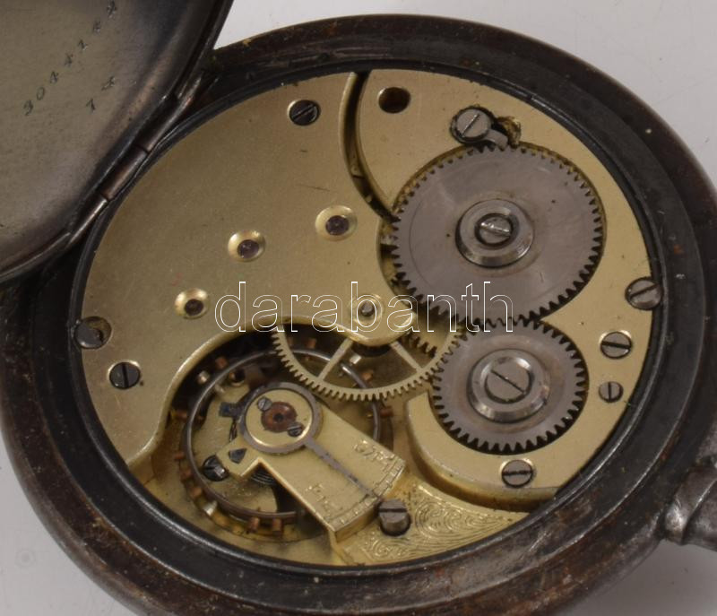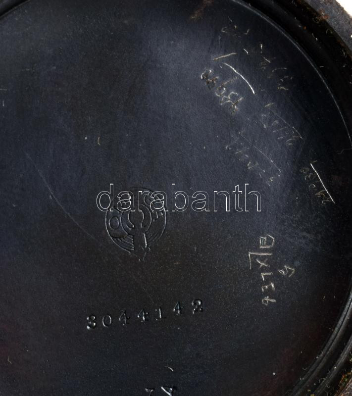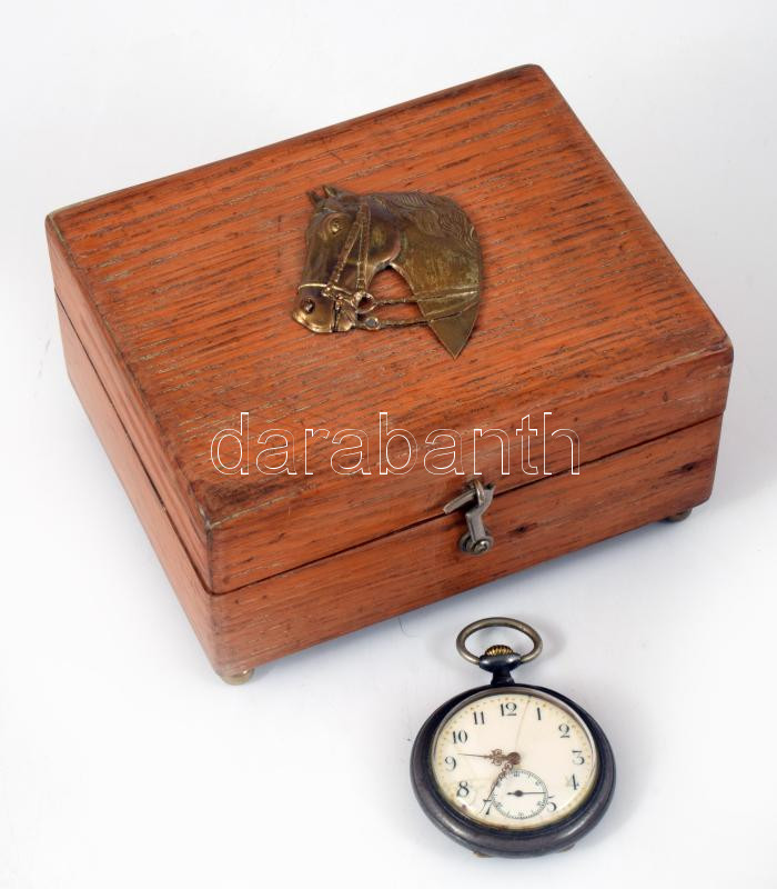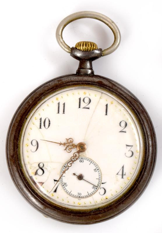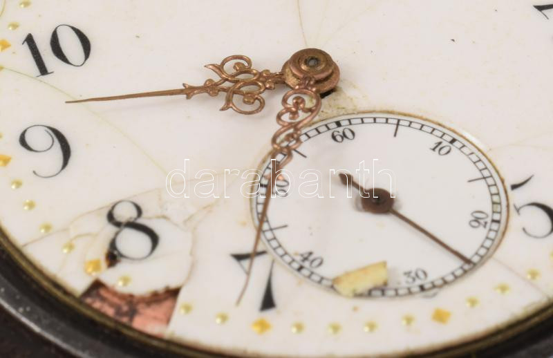 Antik svájci zsebóra, sérült porcelán számlappal, nem működik, dobozban, d: 4,5 cm