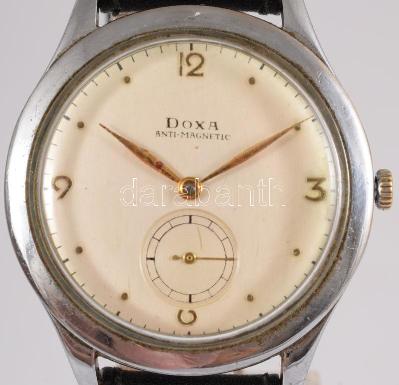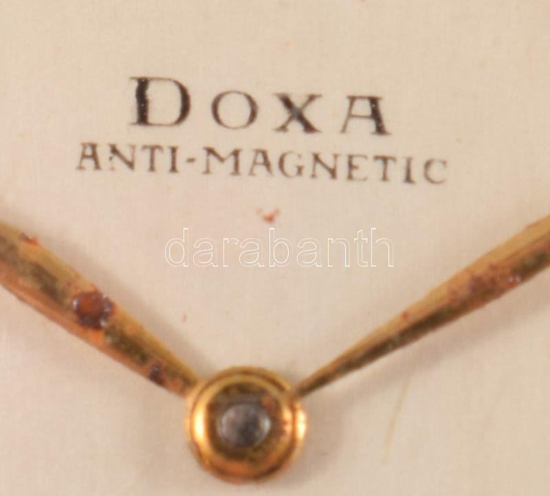 Doxa érdekes fazonú mechanikus karóra, szép számlappal, rég bőr szíjjal. d: 34 mm