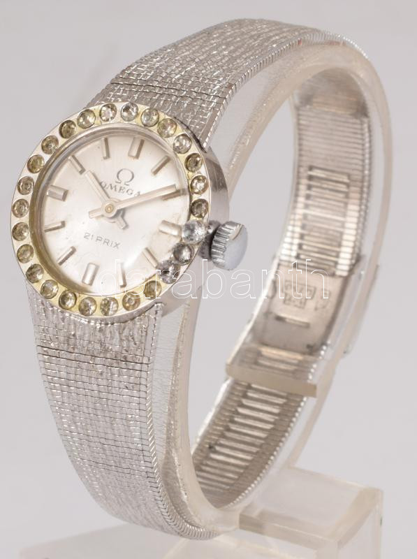 Omega 21 köves mechanikus női karóra, kopással, működik, d: 22mm