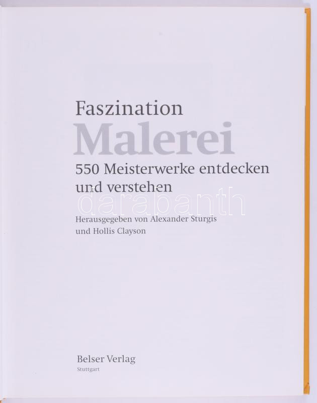 Description: Faszination Malerei. 550 Meisterwerke entdecken und verstehen. Hrsg. von Alexander Sturgis und Hollis Clayson. Stuttgart,2000,Belser. Német nyelven. Gazdag képanyaggal illusztrált. Kiadói kartonált papírkötés.