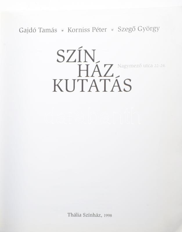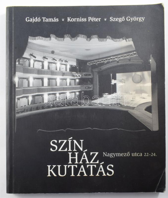 Gajdó Tamás - Korniss Péter - Szegő György: Színházkutatás. Nagymező u... https://www.darabanth.com/en/515-Auction-philately-postcards-numismatics-artwork-books-collectibles-jewelry/518.0/Books/Books-Architecture-Art~1042/Gajdo-Tamas-Korniss-Peter-Szego-Gyorgy-Szinhazkutatas-Nagymezo-utca-22-24-Bp-1998-~II3473089