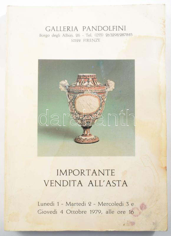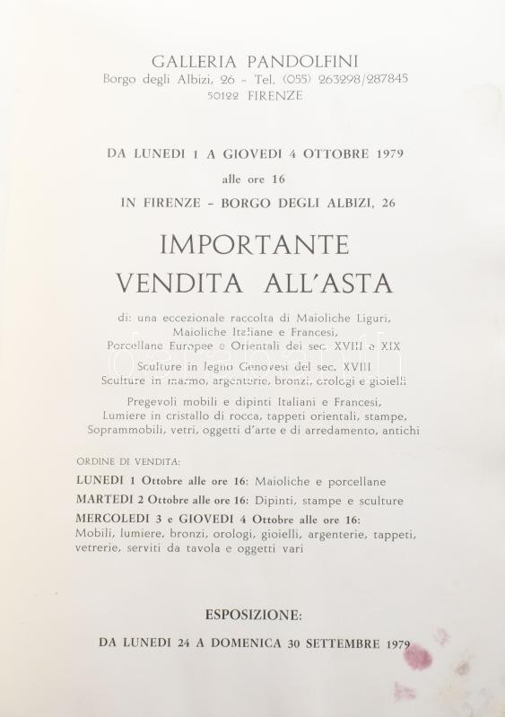 Galleria Pandolfini. Importante vendita all'asta. Firenze, 1979. Kiadói papírkötés, ázásnyomokkal.