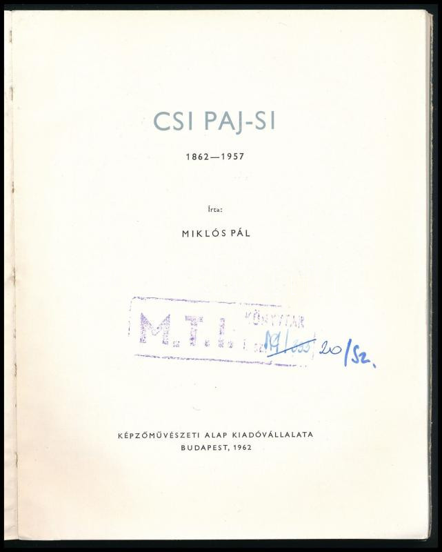 Miklós Pál: Csi Paj-si. 1862-1957. A művészet kiskönyvtára XXXIII. Bp.... https://www.darabanth.com/en/515-Auction-philately-postcards-numismatics-artwork-books-collectibles-jewelry/518.0/Books/Books-Architecture-Art~1042/Miklos-Pal-Csi-Paj-si-1862-1957-A-muveszet-kiskonyvtara-XXXIII-Bp-1962-Kepzomuvesz~II3490515