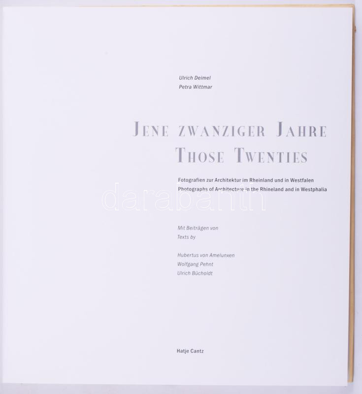 Ulrich Deimel - Petra Wittmar: Jene Zwanziger Jahre Those Twenties. Fotografien zur Architektur im Rheinland und in Westfalen. Photographs of Architecture in the Rhineland and in Westphalia. Ostfildern, 2003,Hatje Cantz. Német nyelven. Gazdag képanyaggal illusztrált. Kiadói kartonált papírkötés, kiadói papír védőborítóban.