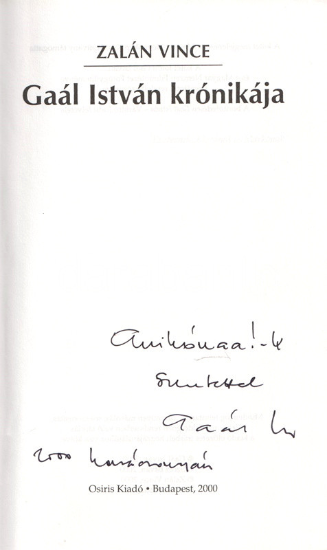 Zalán Vince: Gaál István krónikája. (Dedikált.)