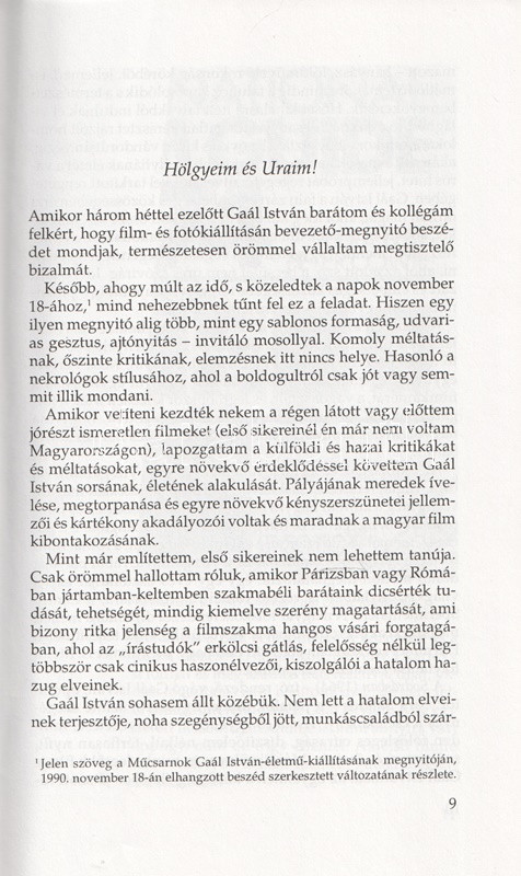 Gaál István (1933-2007) Kossuth- és Balázs Béla-díjas filmrendező, fényképész, operatőr, a Balázs Béla Stúdió alapítója, nemzetközi hírű filmpedagógus. Pályaképét életéből és filmjeiből vett felvételek kísérik. A pályakép után válogatás Gaál István filmes írásaiból és levelezéséből.