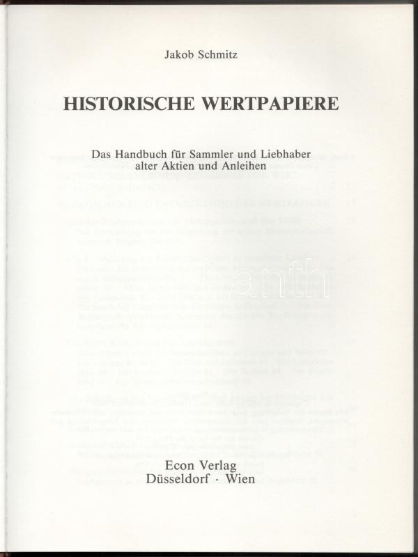 Description: Jakob Schmitz: Historische Wertpapiere. Das Handbuch für Sammler und Liebhaber alter Aktien und Anleihen. Düsseldorf-Wien, 1982, Econ Verlag. Német nyelven. Kiadói egészvászon-kötés, kiadói papír védőborítóban.