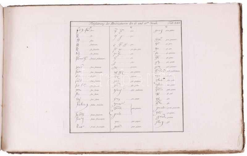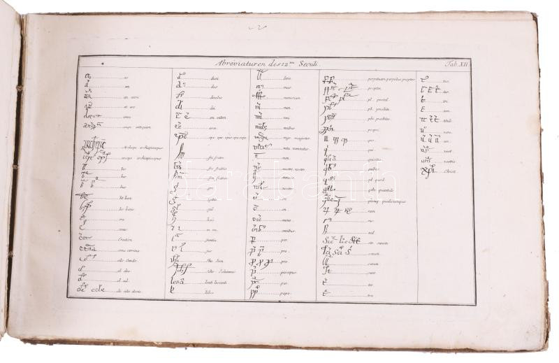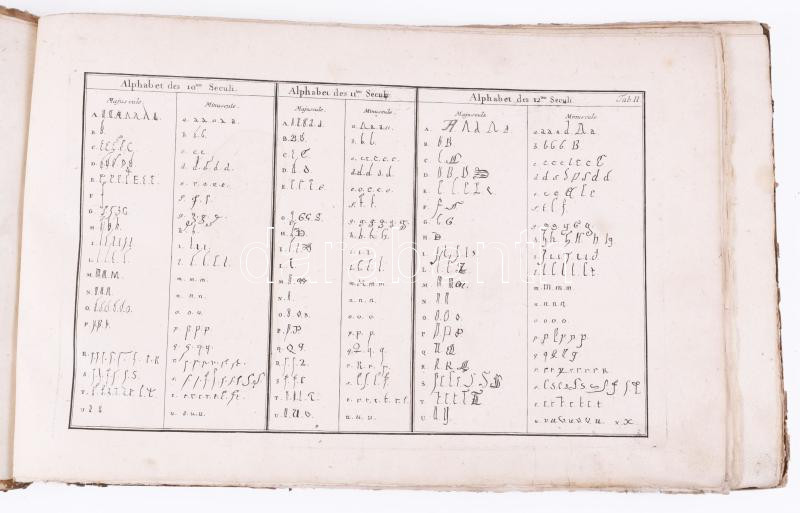 ca 1750 A latin ABC betűinek írásmódjai a különböző évszázadokban, az íráskép fejlődése, változtását bemutató képes könyv 51 rézmetszetű táblával. Korabeli papírkötésben 40x27 cm / ca 1700 Illustrated book showing the writing styles of the Latin ABC letters in different centuries, the development and changes of the writing style, with 51 copperplate plates. 40x27 cm