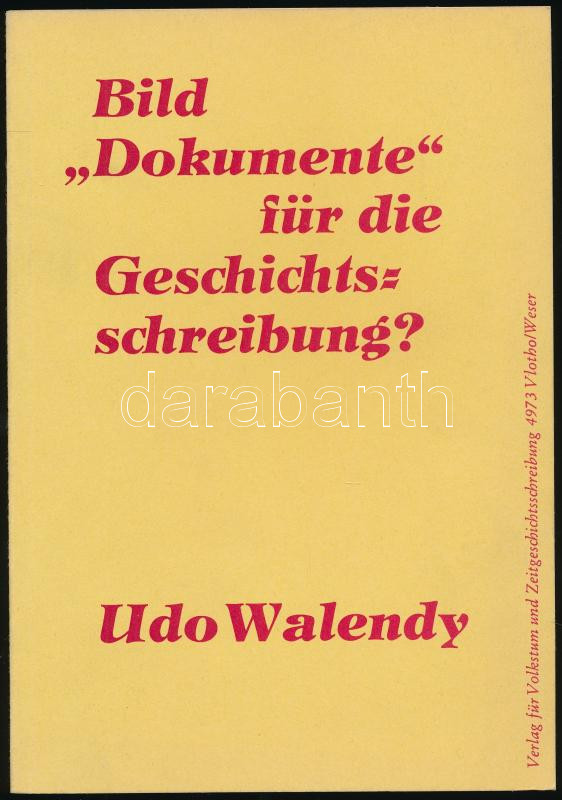 Description: Udo Walendy: Bild "Dokumente" für die Geschichtsschreibung? Vlotho, 1973, Verlag für Volkstum und Zeitgeschichtsschreibung, 79+1 p. Német nyelven. Fekete-fehér fotókkal illusztrált. Kiadói papírkötés.
