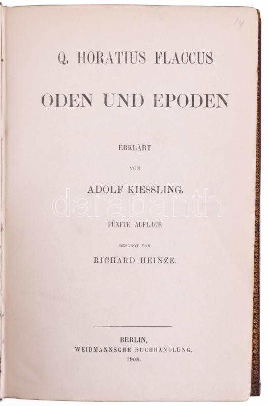 [Quintus] Horatius Flaccus: Oden und Epoden. Erklärt von Adolf Kiessli... https://www.darabanth.com/en/515-Auction-philately-postcards-numismatics-artwork-books-collectibles-jewelry/518.0/Books/Books-Other-languages~1052/Quintus-Horatius-Flaccus-Oden-und-Epoden-Erklart-von-Adolf-Kiessling-Berlin-1908-Weidmannsch~II3490876