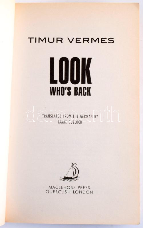 Description: Timur Vermes: Look Who's back. A szerző, Timur Vermes (1967-) író, újságíró által DEDIKÁLT példány! Translated from the German by Jamie Bulloch. London, 2014, Maclehose Press - Quercus. Angol nyelven. Kiadói papírkötésben.