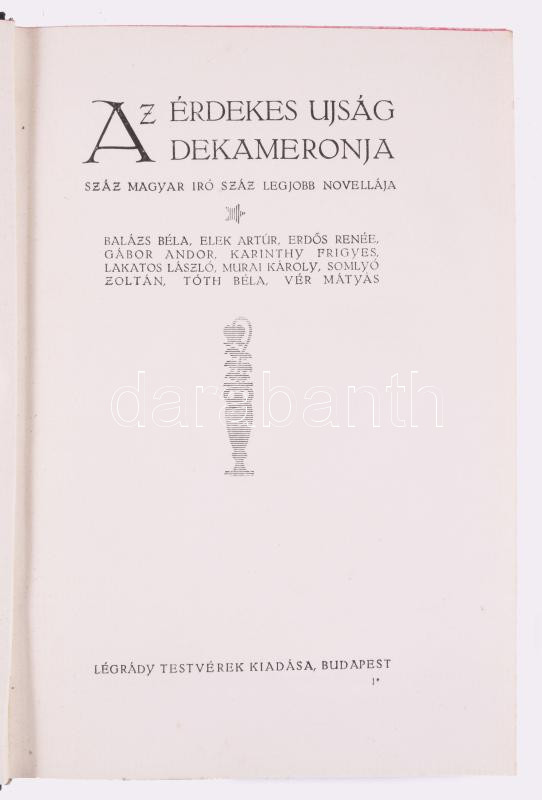 Kabos Ede (szerk.): Az Érdekes Újság Dekameronja. Száz magyar író száz... https://www.darabanth.com/en/515-Auction-philately-postcards-numismatics-artwork-books-collectibles-jewelry/518.0/Books/Books-Other-rarities~1056/Kabos-Ede-szerk-Az-Erdekes-Ujsag-Dekameronja-Szaz-magyar-iro-szaz-legjobb-novellaja-Bp~II3492524
