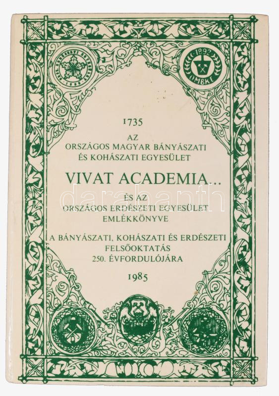 Description: Vivat academia... Az Országos Magyar Bányászati és Kohászati Egyesület és az Országos Erdészeti Egyesület emlékkönyve a bányászati, kohászati és erdészeti felsőoktatás 250. évfordulójára. 1735-1985. Főszerk.: Dr. Bakó Károly. Benne egykorú ajándékozási sorokkal (Dedikált?) Bp., 1985, OMBKE - Országos Erdészeti Egyesület. Kiadói kartonált papírkötés.