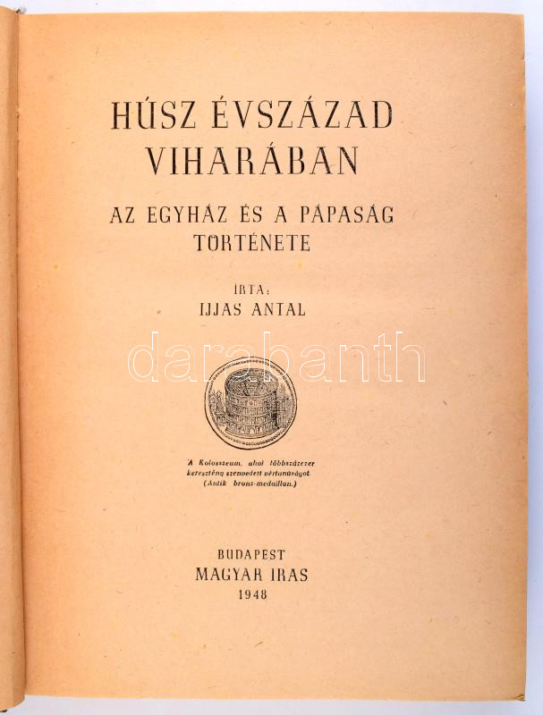 Ijjas Antal: Húsz évszázad viharában. Az egyház és a pápaság története... https://www.darabanth.com/en/515-Auction-philately-postcards-numismatics-artwork-books-collectibles-jewelry/518.0/Books/Books-Religion~1051/Ijjas-Antal-Husz-evszazad-viharaban-Az-egyhaz-es-a-papasag-tortenete-Bp-1948-Magyar-Iras~II3492216