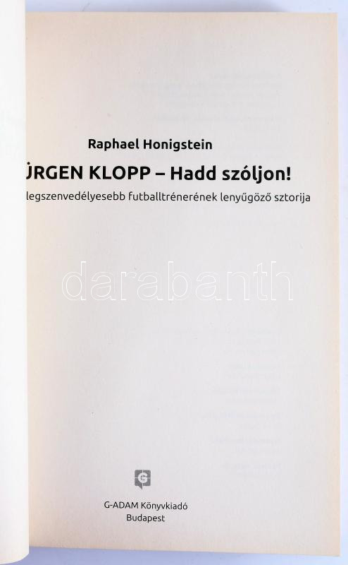 Raphael Honigstein: Jürgen Klopp - Hadd szóljon! A világ legszenvedélyesebb futballtrénerének lenyűgöző sztorija. Bp.,2018,G-Adam. Kiadói papírkötés.