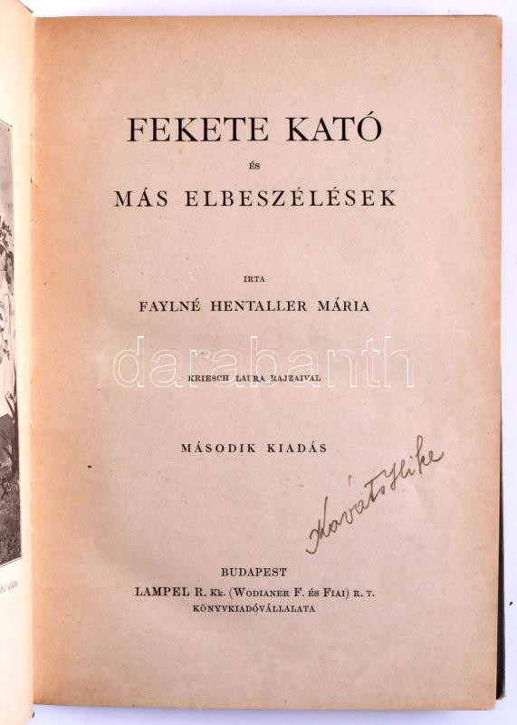 Faylné Hentaller Mária: Fekete Kató és más elbeszélések. Bp., Lampel. Kiadói festett egészvászon kötés, kopottas állapotban.