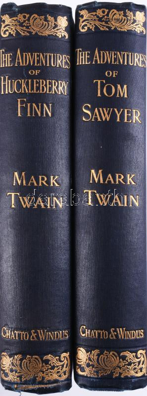 Description: Mark Twain 2 kötete: The Adventures of Tom Sawyer. + The Adventures of Huckleberry Finn (Tom Sawyer's Comrade). London, 1898-1899, Chatto & Windus. Angol nyelven. Kiadói aranyozott egészvászon-kötés.