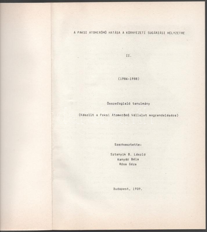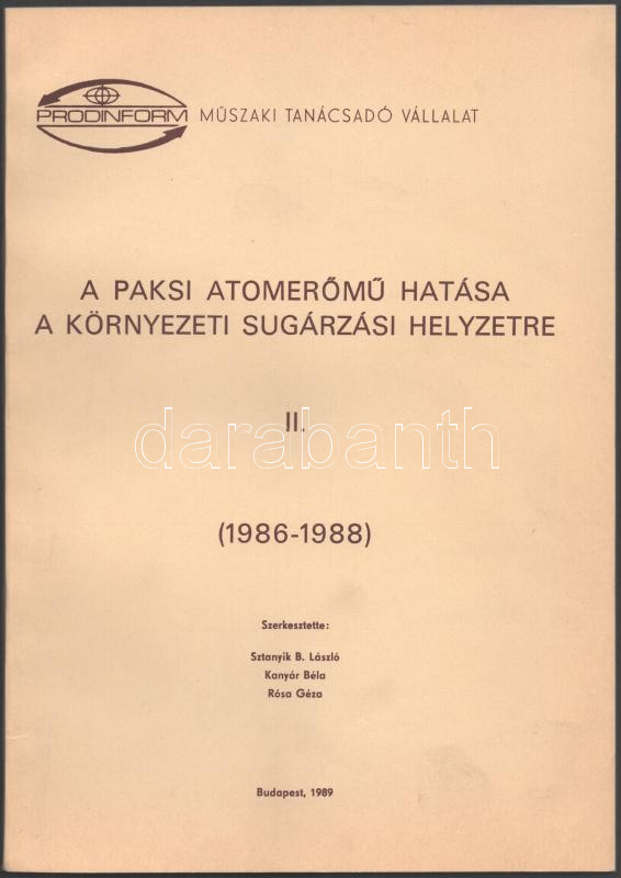 A paksi atomerőmű hatása a környezeti sugárzási helyzetre II. (1986-19... https://www.darabanth.com/en/515-Auction-philately-postcards-numismatics-artwork-books-collectibles-jewelry/518.0/Books/Books-Technics~1048/A-paksi-atomeromu-hatasa-a-kornyezeti-sugarzasi-helyzetre-II-1986-1988-Szerk-Sztanyik-B~II3491314