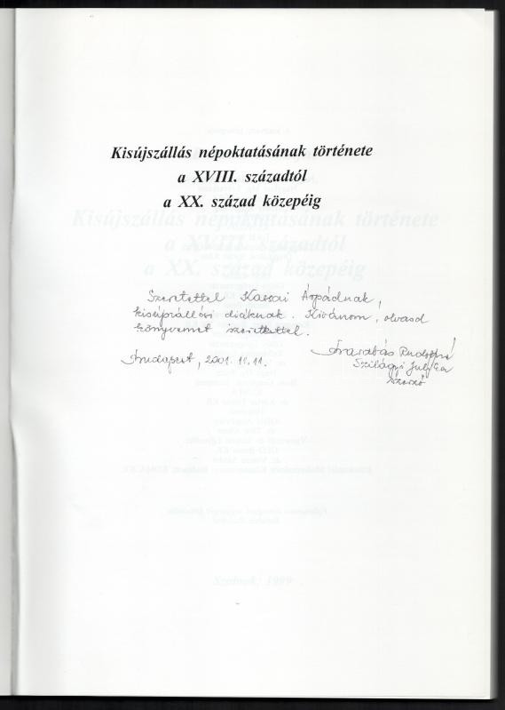 Barabás Rudolfné: Kisújszállás népoktatásának története a XVIII. századtól a XX. század közepéig. Szolnok, 1999. Kiadói papírkötésben, szerzői dedikációval