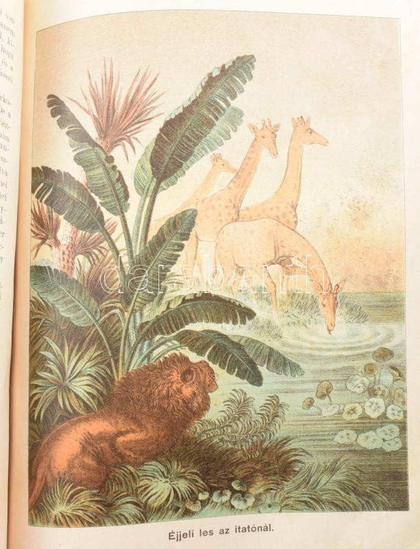 Donászy Ferenc: Őserdőkön, tengereken. Természeti képek és vadászkalandok mind az öt világrészből. Természeti képek és vadászkalandok mind az öt országrészből. Bp.,[1907], Légrády, 6+315 p.+6 (színes képtáblák) t. + 11 (fekete-fehér képtáblák) t. Első kiadás. Donászy Ferenc (1864-1923) ifjúsági író, gyógyszerész. Ifjúsági ismeretterjesztő írása színes állattani leírás és novellagyűjtemény. A szerző nem rejtegeti külföldi forrásait, ám a külföldi forrásokat gyakran saját tapasztalataival egészíti ki. A kötetben olykor korjellemző politikai kommentárok is előbukkannak (Ne vándoroljatok ki!), melyeknek összekapcsolása a zoológiai anyaggal a szerző legsajátabb leleménye.