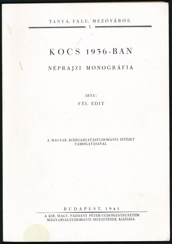 Fél Edit: Kocs 1936-ban. Néprajzi monográfia. Tanya, falu, mezőváros I. köt. Kocs, 1992., Kocs Községi Önkormányzat. Reprint kiadás. Kiadói papírkötésben.