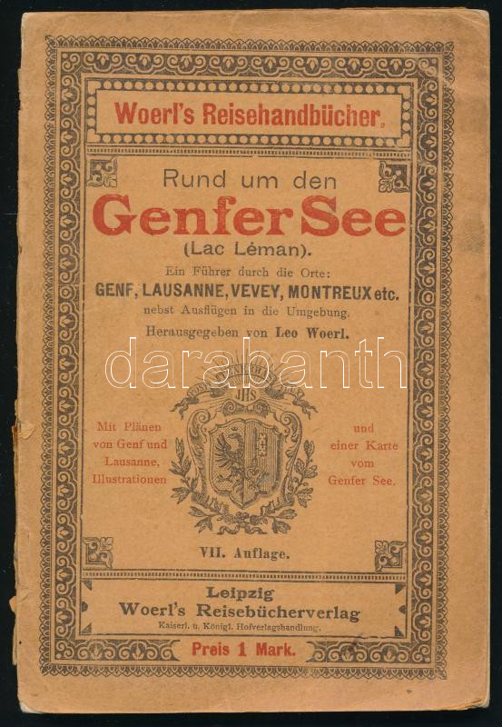 Léman, Lac: Rund um den Genfer See. Leipzig, 1903, Woerl's Reisebüchverlag. Kiadói papírkötés, gerinc sérült, kissé kopottas állapotban, térképmelléklettel.