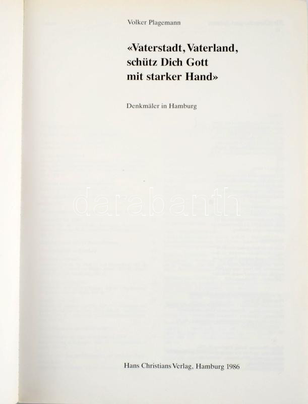 Volker Plagemann: "Vaterstadt, Vaterland, schütz Dich Gott mit starker Hand". Denkmäler in Hamburg. Themen-Reihe Band 2. Hamburg, 1986, Hans Christians Verlag. Német nyelven. Gazdag képanyaggal illusztrált. Kiadói papírkötés.