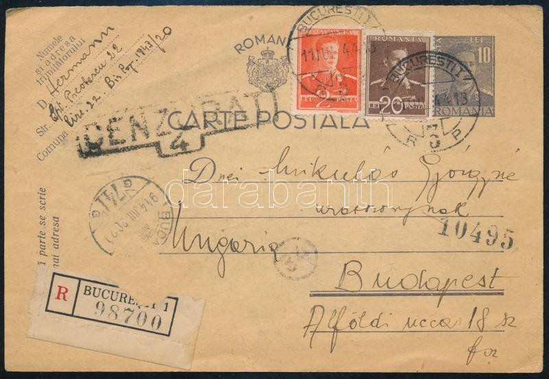 1944 Ajánlott cenzúrázott levelezőlap / Registered censored postcard