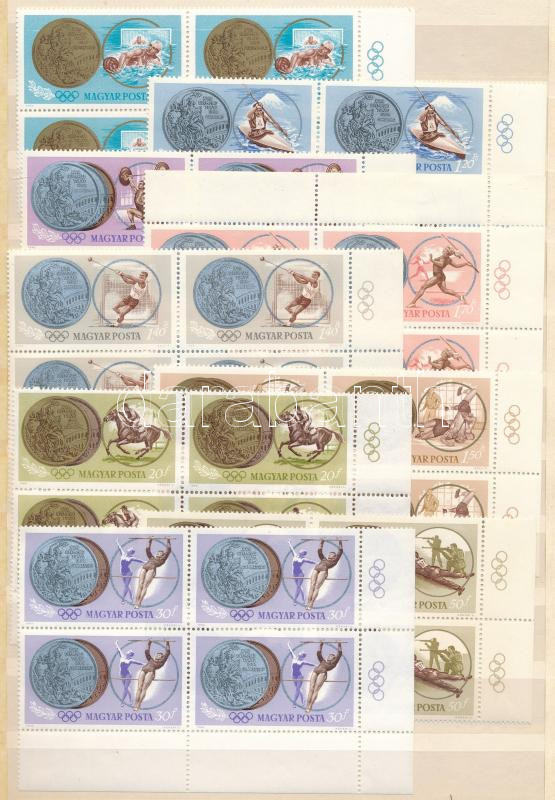https://www.darabanth.com/en/515-Auction-philately-postcards-numismatics-artwork-books-collectibles-jewelry/518.0/Hungarian-philately-and-postal-history/Issues-between-1957-1969~119/1965-Olimpiai-ermesek-I-Tokio-sor-4-es-tombokben-jobb-oldali-otkarikas-ivszellel-es~II3490733