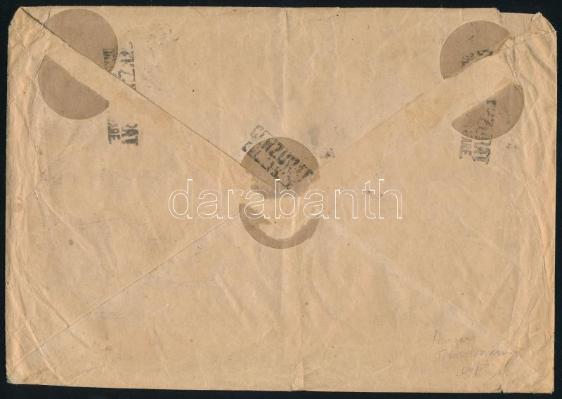 Nagyvárad 1921 Külföldre küldött ajánlott üzleti levél ellenőrzés után a hátoldalon körcímkékkel leragasztva és cenzúrabélyegzővel ellátva, a levél feladója a Kemény Nagyváradon, címzettje Siegmund Hartig Berlinben, Bodor tanúsítvánnyal