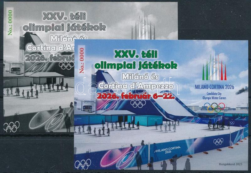 2025 XXV. Téli olimpiai játékok 2026 Milánó és Cortina d'Ampezzo emlékív pár azonos (No 0000) sorszámmal
