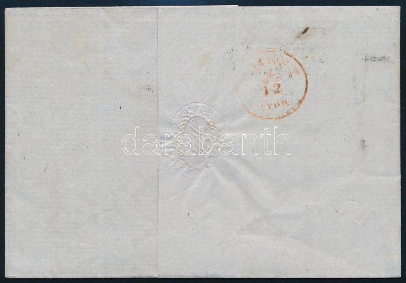 1856 6kr MP III teljes tartalmú levélen (a cégbélyegzésbe dátumot írtak) "ZENGG" Triesztbe, piros érkezési bélyegzéssel