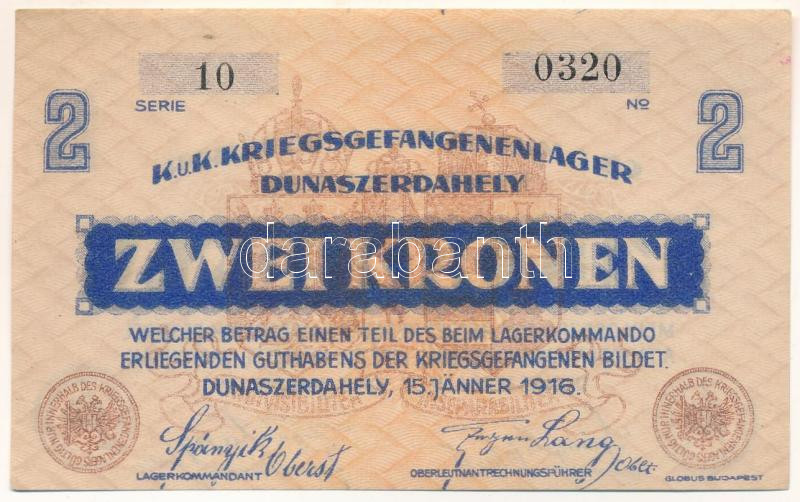 1916. Hungary / Dunaszerdahely / POW camp 2 Kronen "10 0320" C:AU
