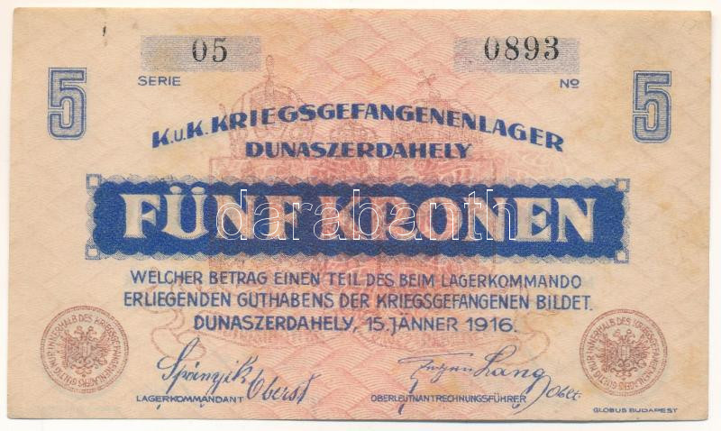 1916. Hungary / Dunaszerdahely / POW camp 5 Kronen "05 0893" C:AU
