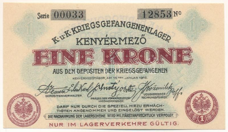 1916. Hungary / Kenyérmező / POW Camp 1 Krone "00033 12853" C:UNC