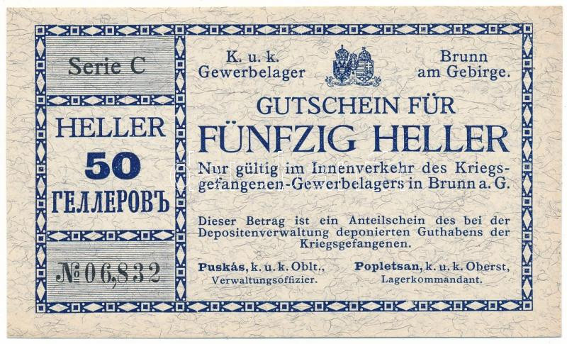 Austria / Brunn am Gebirge POW camp 1914-1918. 50 Heller C:UNC,AU