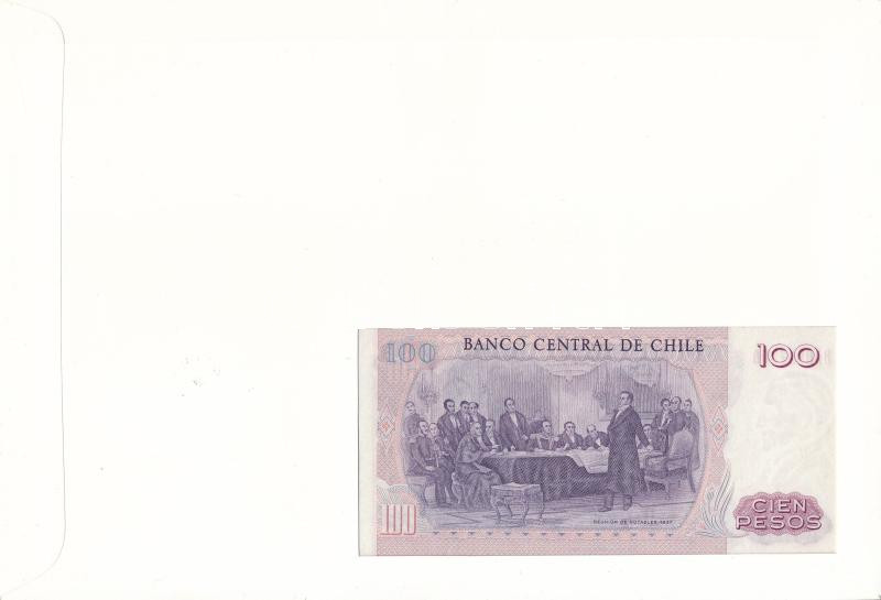 Chile 1983. 100P felbélyegzett borítékban, alkalmi bélyegzéssel T:UNC Chile 1983. 100 Pesos in envelope with stamp and cancellation C:UNC