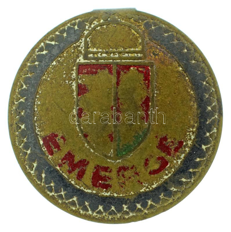 1930-1940 k. "EMERGÉ" festett, ezüstözött gumiárú gyár gomblyukjelvény, hátlapon "DR BOSSÁNYI" gyártói jelzéssel (20mm) T:XF,VF erősen kopott festés és ezüstözés