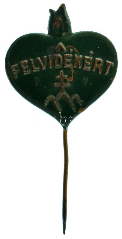 1930 k. "A Felvidékért - T.V." festett bronz kitűző, zöld (2...