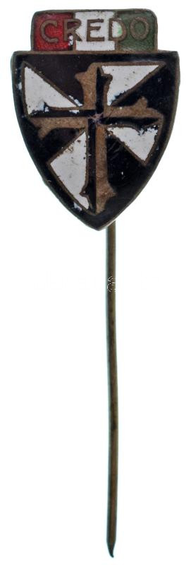 1930 k. "CREDO" zománcozott bronz katolikus egyesületi jelvény (19x15mm) T:XF zománchiba
