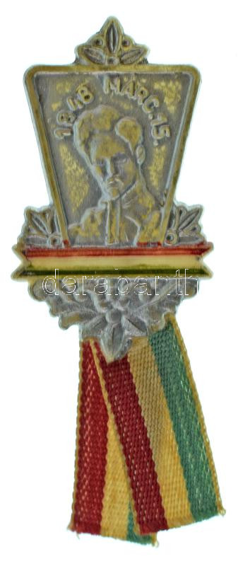 1948 k. "Petőfi" festett bakelit jelvény nemzetiszín szalaggal T:VF