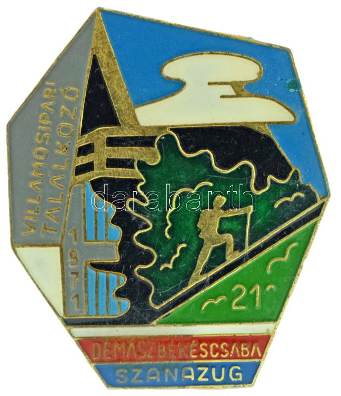 1971. "Villamosipari Találkozó - DÉMÁSZ Békéscsaba Szanazug" zománcozott fém jelvény (38x45mm) T:XF