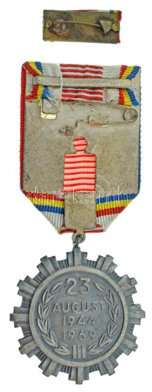 Románia 1969. "A felszabadulás 25. évfordulója" fém kitüntetés mellszalagon, szalagsávval T:AU patina