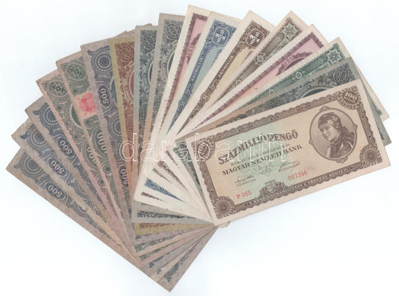 1945-1946. 17db pengő bankjegy, közte 1945. 500P magyar "N" ...