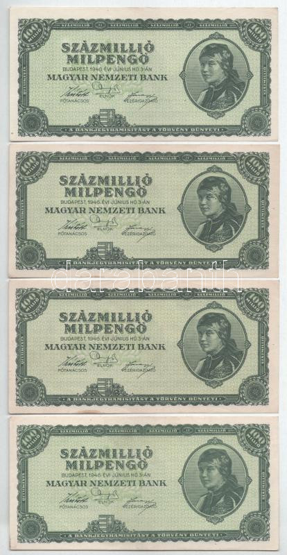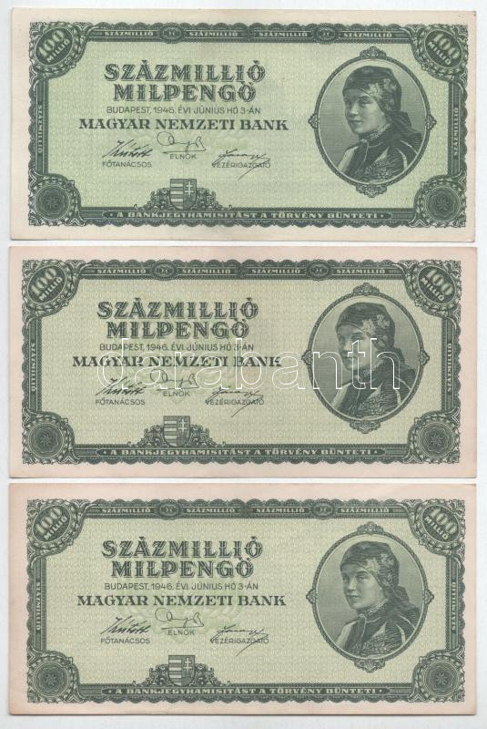 1946. 100.000.000MP (7x), közte egy enyhén eltolódott nyomat T:XF-F mind szép papír