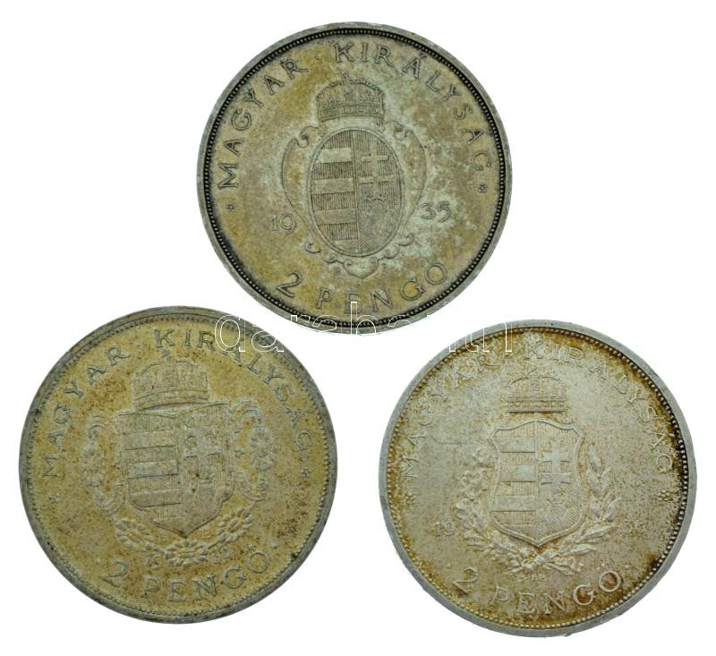 Hungary 1935. 2 Pengő Ag "Pázmány" + 2 Pengő Ag "Rákóczi" + 1936. 2 Pengő Ag "Liszt Ferenc" - "Pázmány-series" C:AU,XF patina