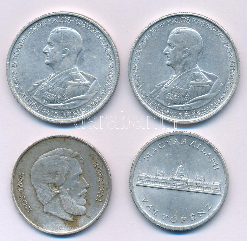 1943. 5P Al "Horthy Miklós születésének 75. évfordulójára" (2x) + 1945. 5P Al "Parlament" + 1947. 5Ft Ag "Kossuth" T:XF-F patina