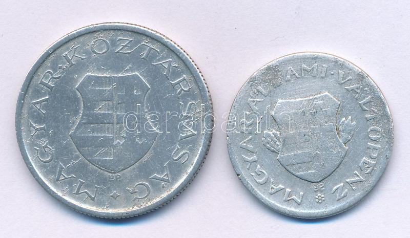 1946. 1Ft Al "Kossuth-címer" + 1946. 2Ft Al "Kossuth-címer" T:VF,F anyaghiba
