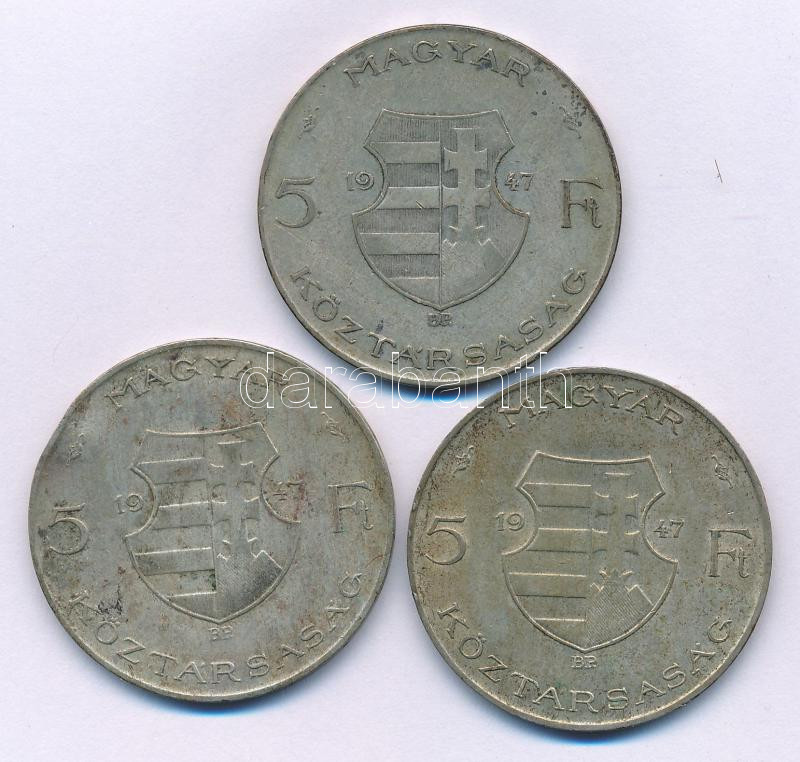 1947. 5Ft Ag "Kossuth" (3x) T:VF,F patina