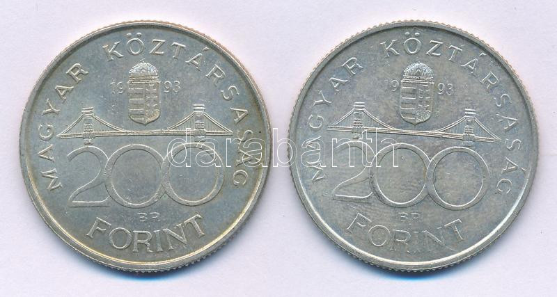 1993. 200Ft Ag "MNB" (2x) T:AU,XF patina